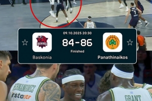 体育资讯10月10日讯 在今天凌晨的欧篮联比赛中,帕纳辛纳科斯86-84击败巴斯克尼亚,纳恩在最后时刻完成了压哨绝杀,帮助球队2分险胜。