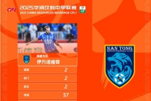 在2025中甲联赛第25轮比赛中,南通支云足球俱乐部主场对阵青岛红狮。上半场第18分钟,伊万诺维奇接队友传中头槌破门,帮助球队扩大比分。第31分钟,伊万诺维奇在禁区内推射破网再下一城。最终,伊万诺维奇上演梅开二度,帮助南通支云7比1大胜对手。