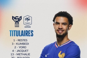 体育资讯10月10日讯 北京时间稍后0点,法国U21在U21欧洲杯资格赛客场对阵法罗群岛U21,法国队公布了本场比赛的首发名单。