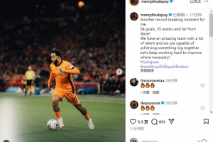 德佩社媒晒出比赛照片,并写道:“对我来说又是一个打破纪录的时刻。 54个进球,35次助攻,而且远未结束!”
